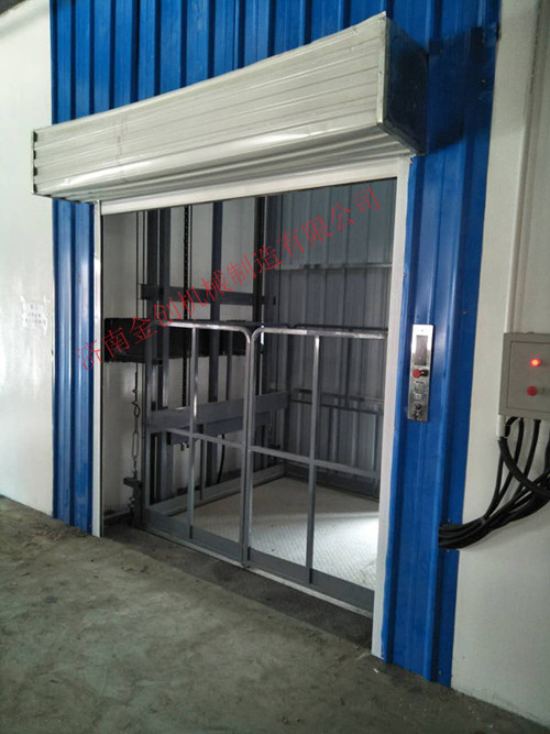 液壓升降貨梯廠家-濟南金創升降機械公司,生產的升高6米,載重3噸,彩鋼板外封結構導軌鏈條式液壓升降貨梯在天津安裝完成.