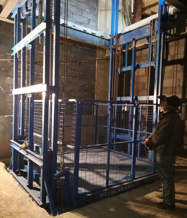 鏈條式液壓升降貨梯是用于貨物升降的升降機械設備,采用液壓油缸作為主要動力,通過重型鏈條和鋼絲繩傳動,保證機器運行的絕對安全。貨梯無需地坑和機房,特別適合于有地下室、倉庫改造、新建貨架等,具有安裝維修方便、美觀、安全、操作方便。具體根據現場的實際環境生產。